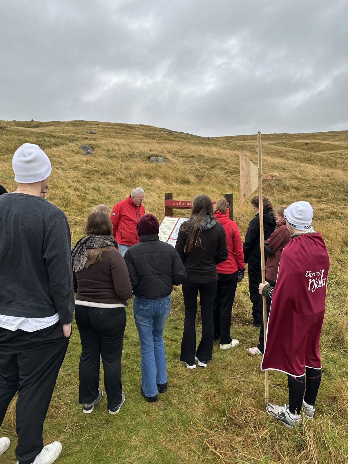 Föstudaginn 10. október síðastliðinn lagði vaskur hópur nemenda upp frá Fjölbrautaskóla Suðurlands. Förinni var heitið í Rangárvallasýslu á slóðir Gunnars, Hallgerðar, Njáls, Skarphéðins, Bergþóru og Hildigunnar svo nokkrar persónur Brennu-Njáls sögu séu tíndar til. Lá leiðin upp með Ytri-Rangá að Þingskálum þar sem litið var yfir búðartóftir á þingstað. Því næst var ekið að Gunnarssteini en þar brugðu nemendur á leik og settu sig í spor þeirra bræðra, Gunnars, Kolskeggs og Hjartar þegar vesælir menn sátu fyrir þeim 30 talsins.