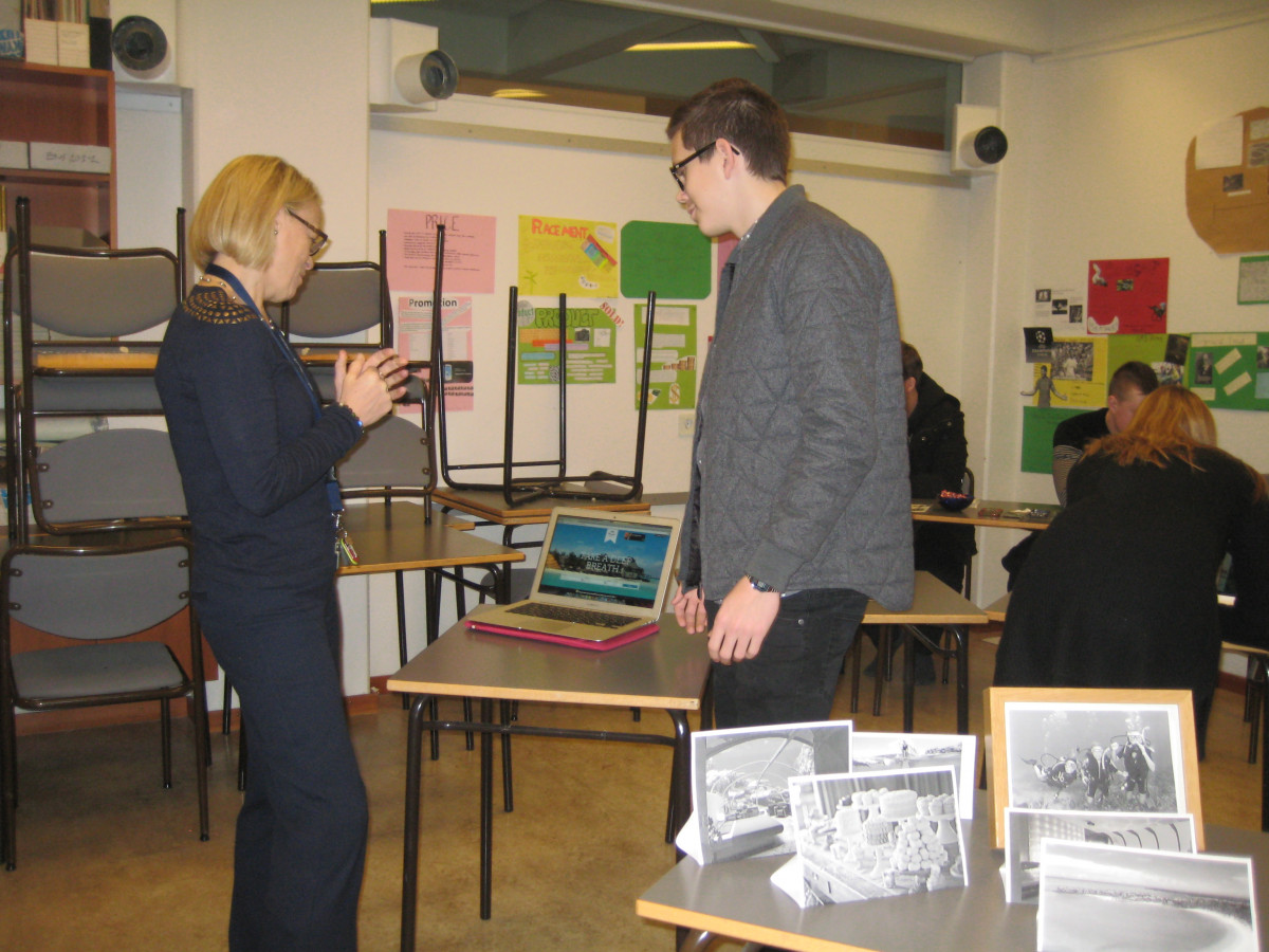 Hóparnir settu upp kynningarbása og sögðu frá sínu fyrirtæki og reyndu að sjálfsögðu að selja gestum sína hugmynd. Þarna mátti sjá fyrirtæki í ferðaþjónustu, neðansjávarhótel, vefverslun, veitingastað og hönnunarfyrirtæki. Á myndunum má sjá nemendur í söluham, en fleiri mydnir má finna á fésbókarsíðu skólans. Kennari er Guðfinna Gunnarsdóttir.