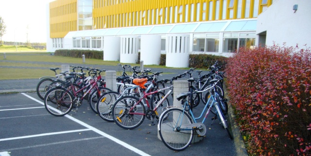 Myndirnar eru teknar við Iðu og Odda á venjulegum skóladegi en einnig er hjólastæði við kennarainnganginn og er það einnig venjulega yfirfullt.